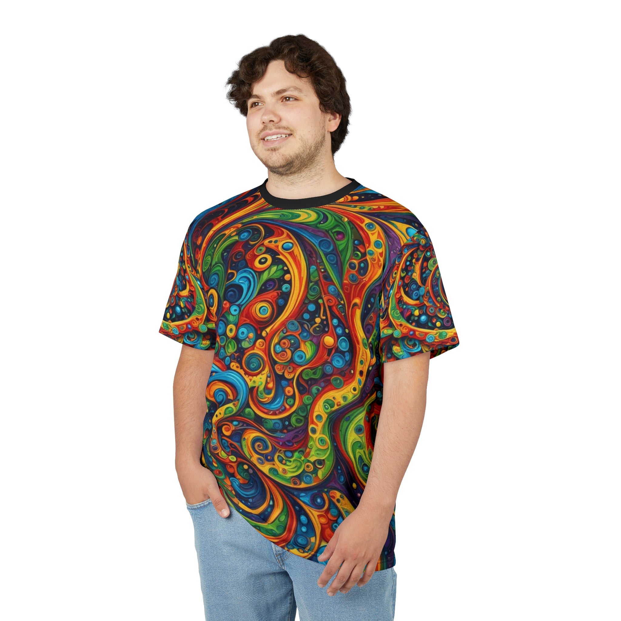Vibrant Psychedelic AOP Tee, Unisex Graphic Shirt, Unique Art Tee, Colorful Summer Fashion, Festival Wear, Statement Casual Top